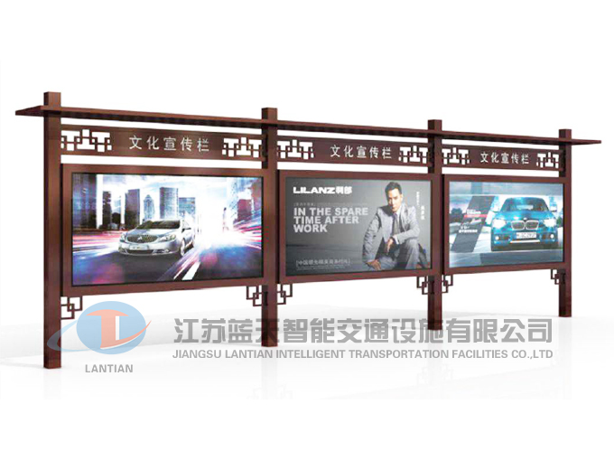 是一家生產(chǎn)宣傳欄,候車亭,公交站臺,閱報欄,指路牌,廣告垃圾箱,滾動換畫燈箱等系列產(chǎn)品廠家!產(chǎn)品多達上百種,亦可根據(jù)客戶的需求加工制作各種型號、規(guī)格的產(chǎn)品。目前已經(jīng)成功的向市場推出裝備有太陽能的各類產(chǎn)品,緊跟國家倡導(dǎo)“節(jié)能低碳”的環(huán)保政策。